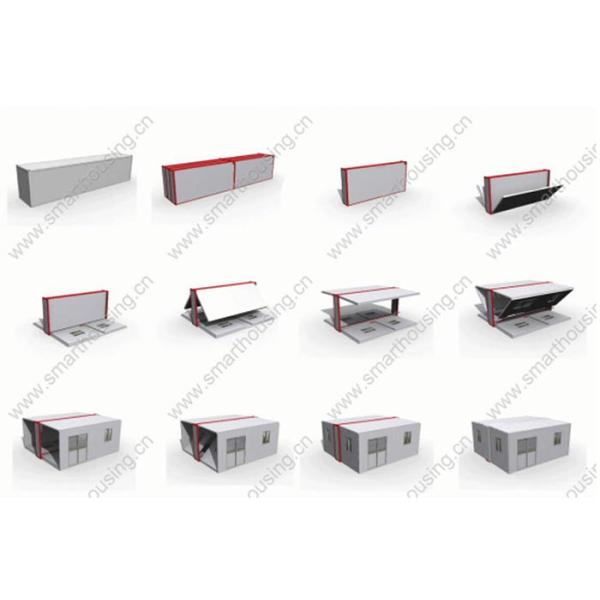 Wall panels are made of 50mm with an 8kg density EPS foam sandwich panel. All panels are fixed in the factory and hinged with a roofing panel. The thickness of steel for the panel is 0.35mm outside and 0.35mm inside.